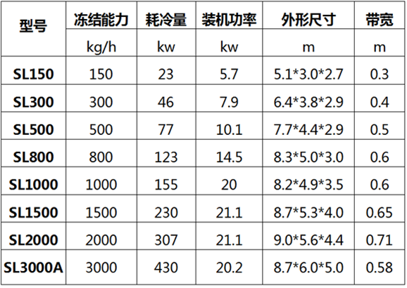 主要適用海產(chǎn)類、肉類產(chǎn)品、家禽產(chǎn)品、面點、調(diào)理食品、蔬菜、水果以及乳制品、冰激凌等食品的快速凍結(jié)。